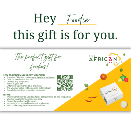 Treat someone to an unforgettable culinary experience with The African Cart Physical Gift Card. Perfect for food lovers, busy families, or anyone who loves to experience new flavours or enjoys bold African flavours, this beautifully packaged gift card is an easy and thoughtful way to show appreciation.